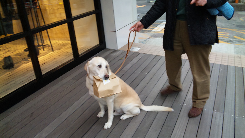 しかもこのワンちゃん、お口に紙袋を咥えて☆