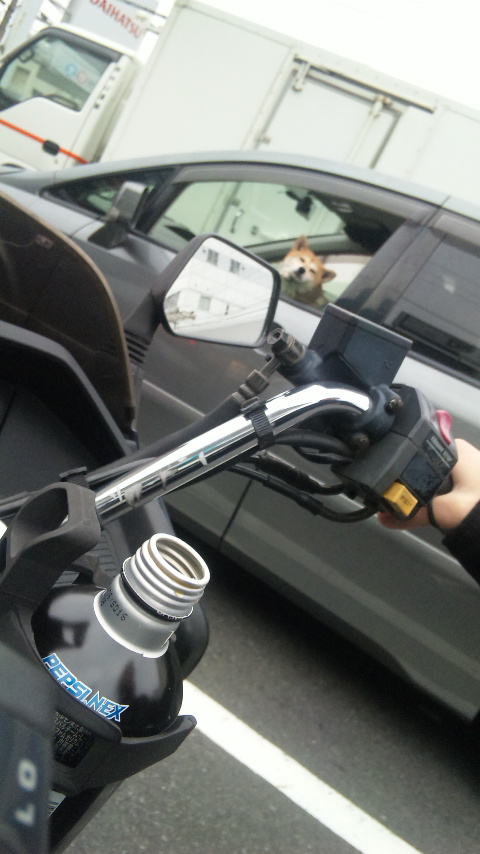 車から顔を出す可愛いワンコが☆