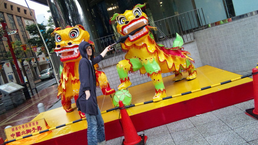 中華街の護り神、シーサー(的な感じ?だって名前わからんもん)に傘を食べられちゃったのです。