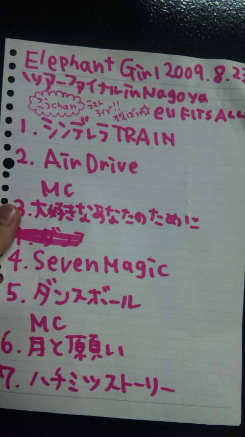 今回、こんな感じでバンドライブのセットリスト、