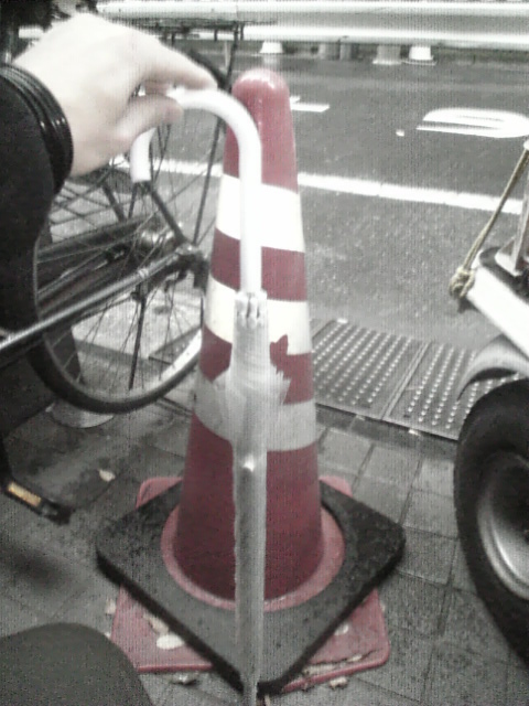 傘を立てて取り掛かろうとしても地面にまで届かない。